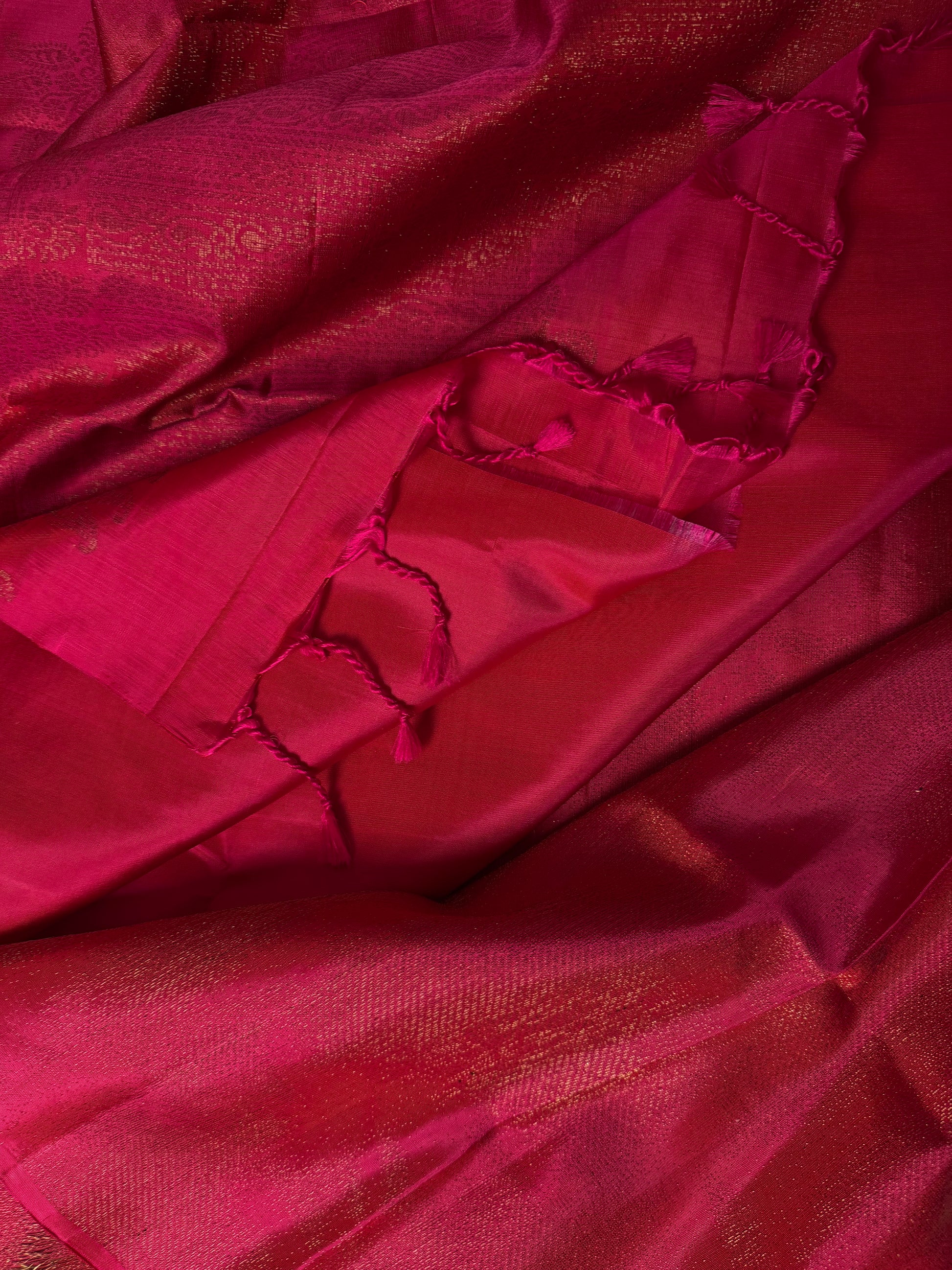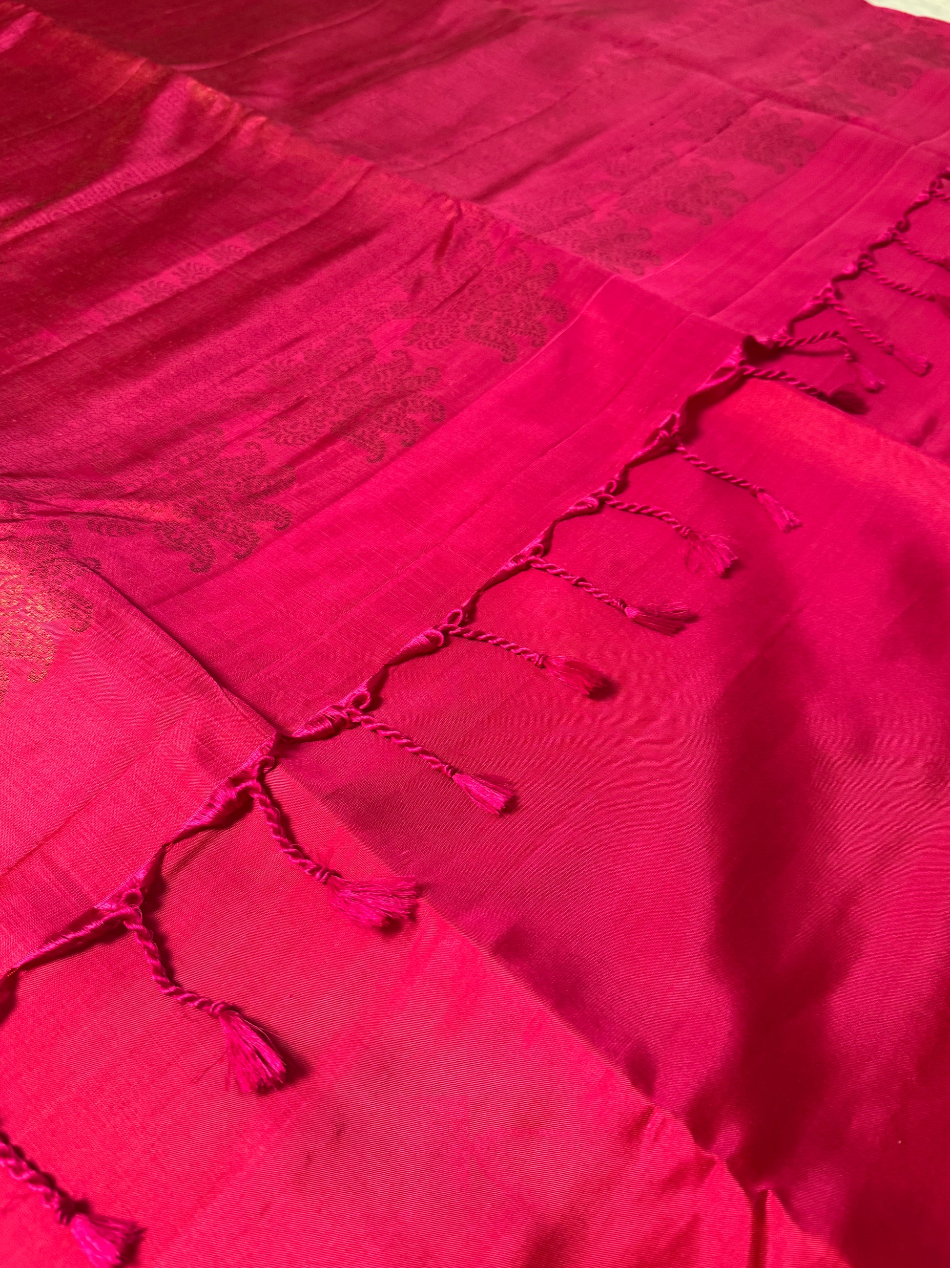 Fuchsia- Deep Pink Soft Silk Saree with Light Gold Sheen