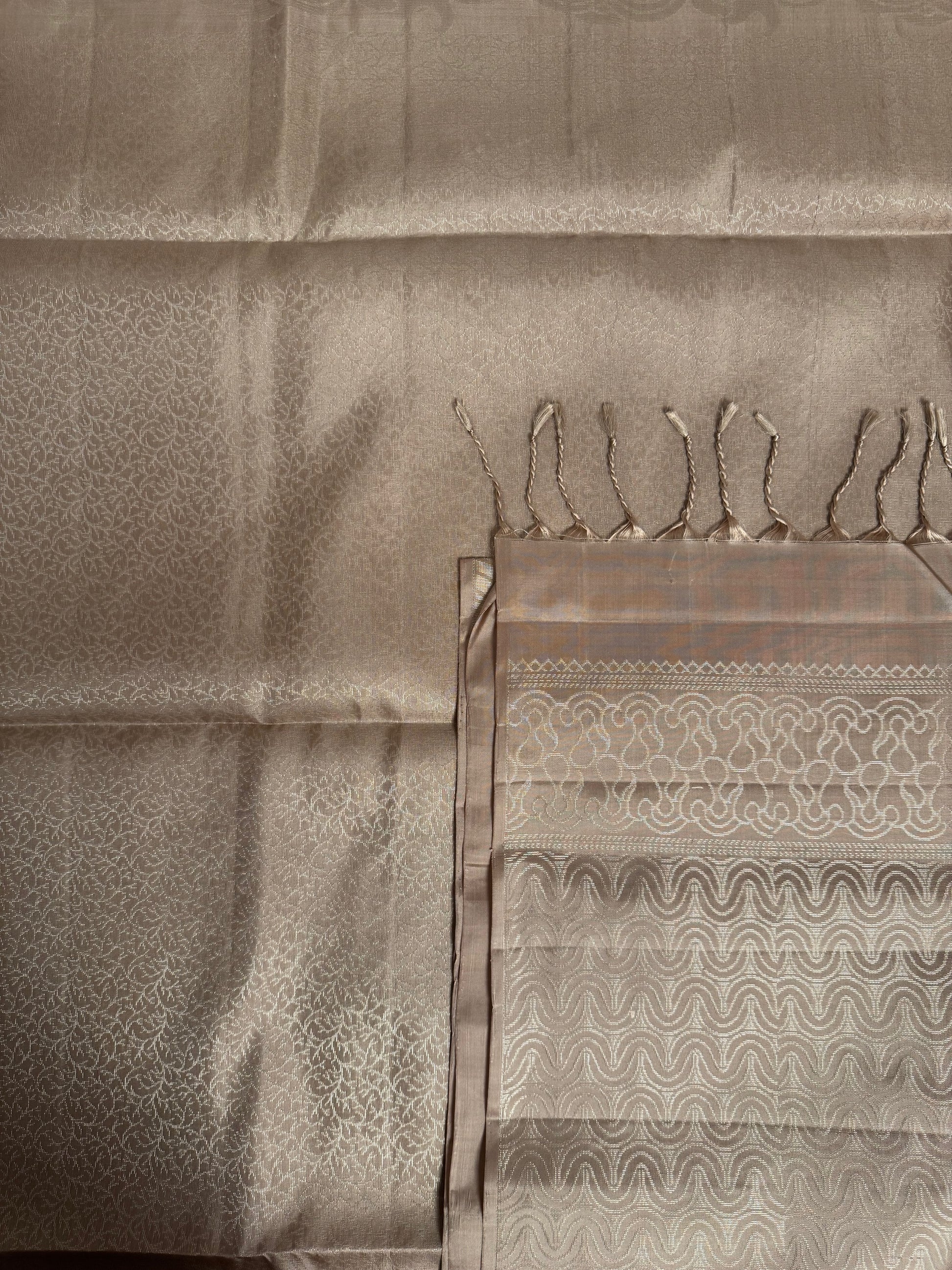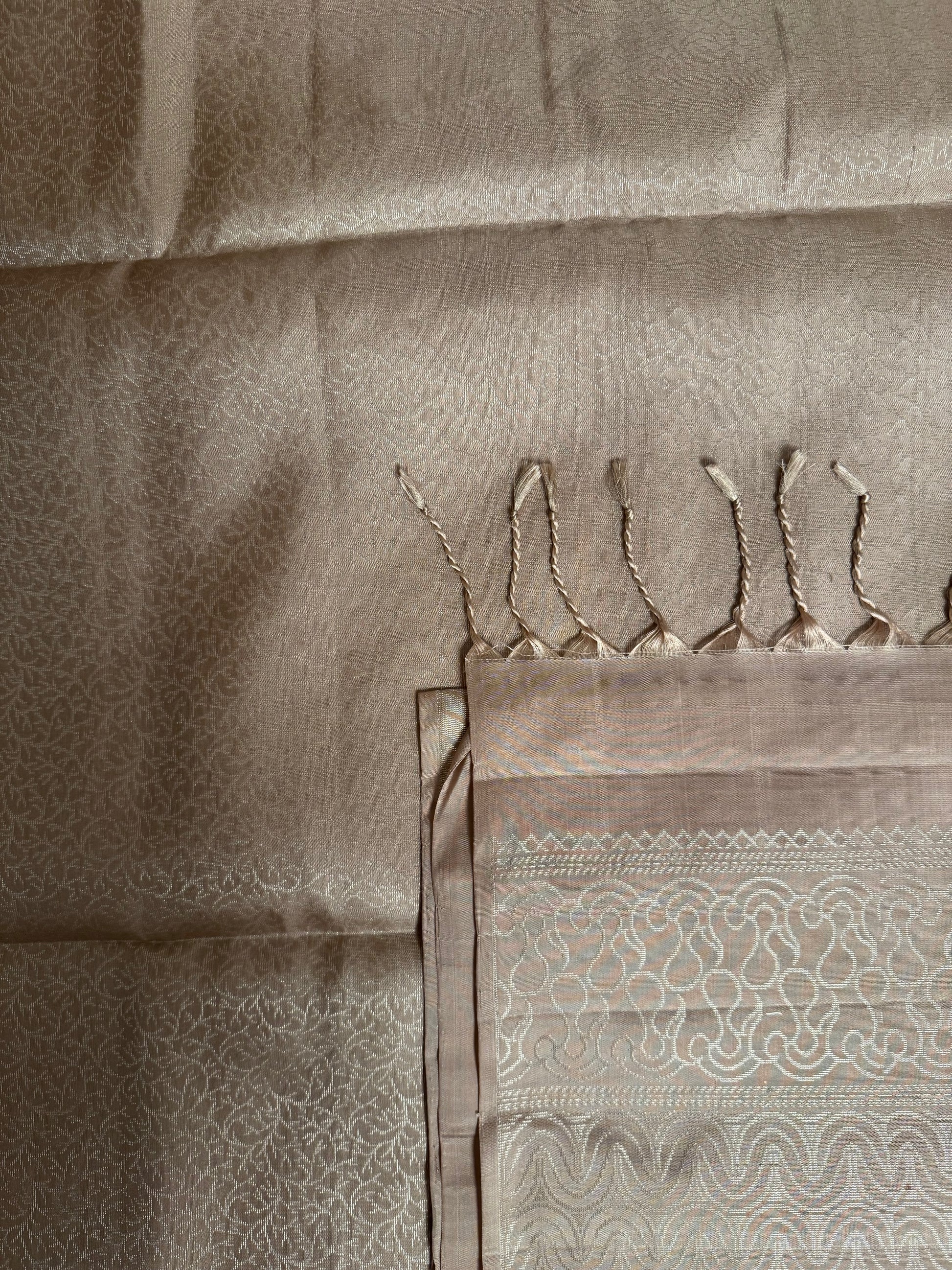 Soliel Silk – Champagne Cream Saree with Metallic Zari Weave